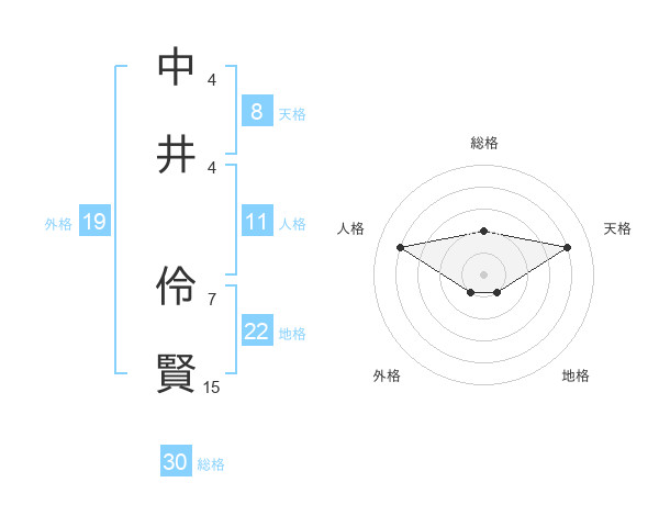 中井 伶賢さんを姓名の画数から五運を鑑定