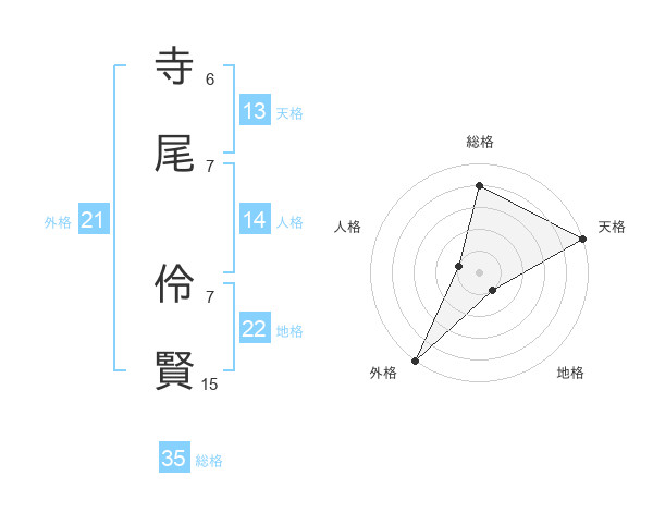 寺尾 伶賢さんを姓名の画数から五運を鑑定