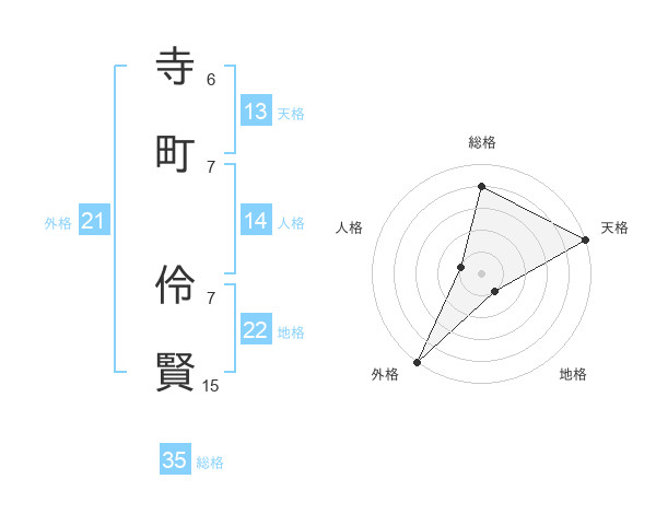 寺町 伶賢さんの天格は13画の5点!