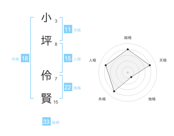 小坪 伶賢さんを姓名の画数から五運を鑑定