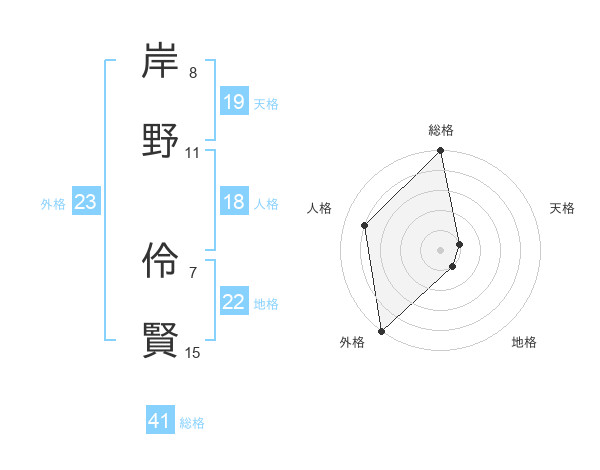 岸野 伶賢さんの総格は41画の5点!