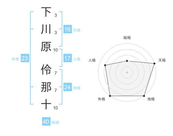 下川原 伶那十さんの地格は24画の5点!