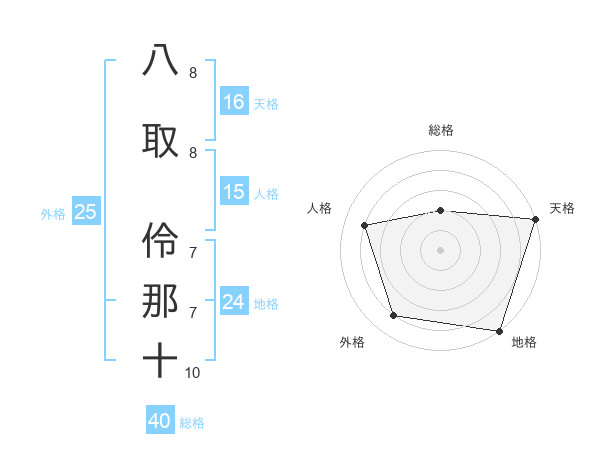 八取 伶那十さんの天格は16画の5点!