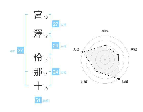 宮澤 伶那十さんを姓名の画数から五運を鑑定