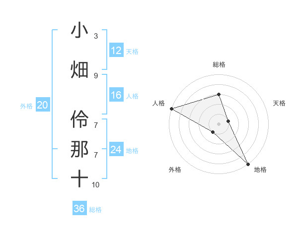 小畑 伶那十さんを姓名の画数から五運を鑑定