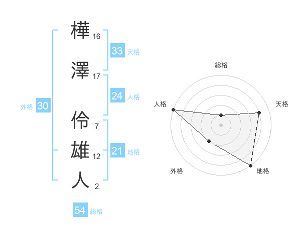 樺澤 伶雄人さんを姓名の画数から五運を鑑定