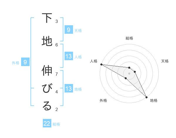 下地 伸びるさんの地格は13画の5点!