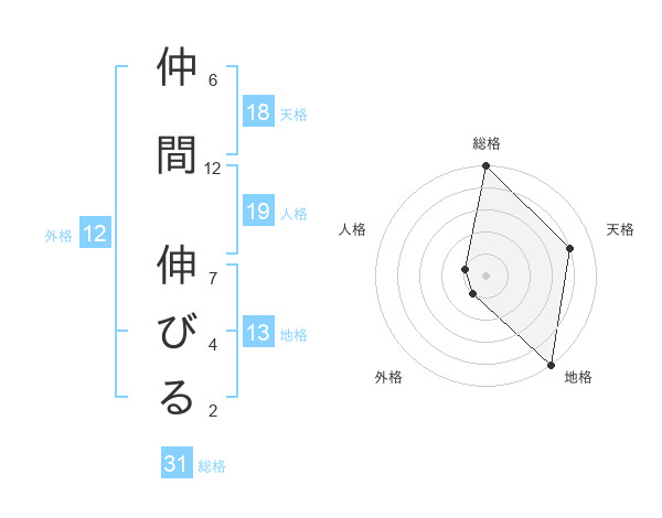 仲間 伸びるさんの総格は31画の5点!