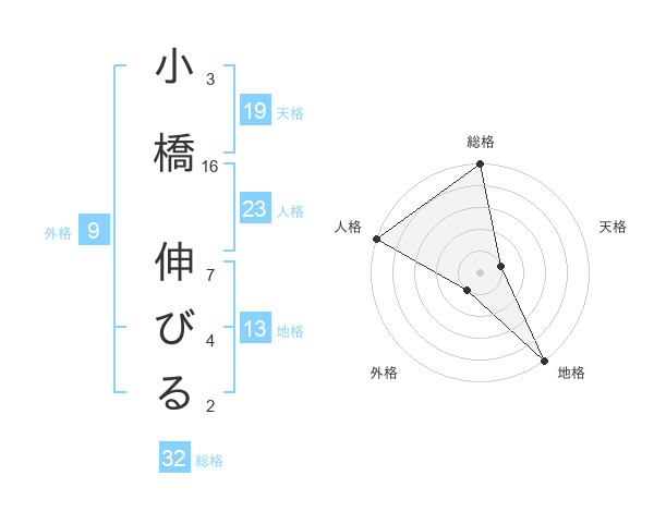小橋 伸びるさんの総格は32画の5点!