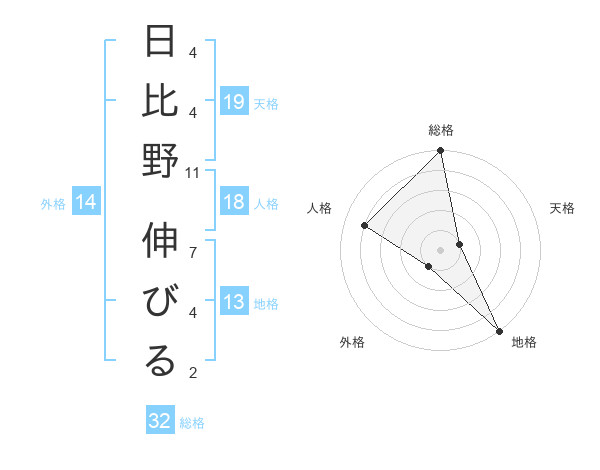 日比野 伸びるさんの総格は32画の5点!