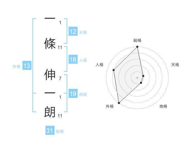 一條 伸一朗さんを姓名の画数から五運を鑑定