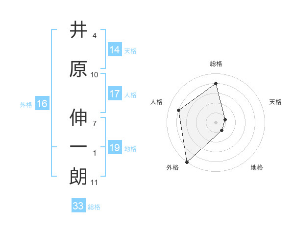 井原 伸一朗さんを姓名の画数から五運を鑑定
