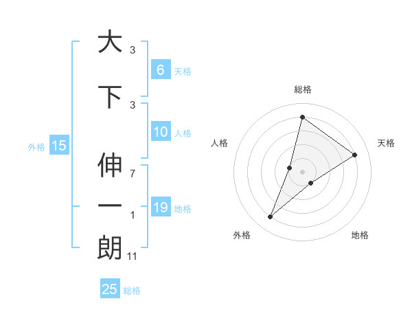 大下 伸一朗さんを姓名の画数から五運を鑑定