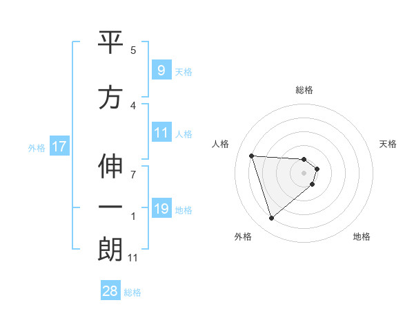 平方 伸一朗さんの総格は28画の1点!