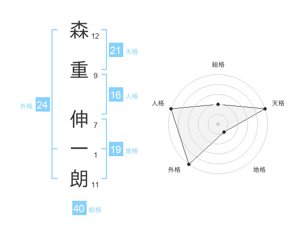 森重 伸一朗さんの天格は21画の5点!
