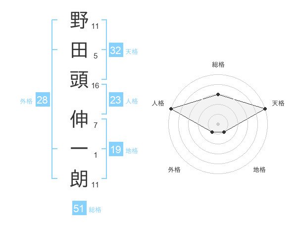 野田頭 伸一朗さんの総格は51画の3点!