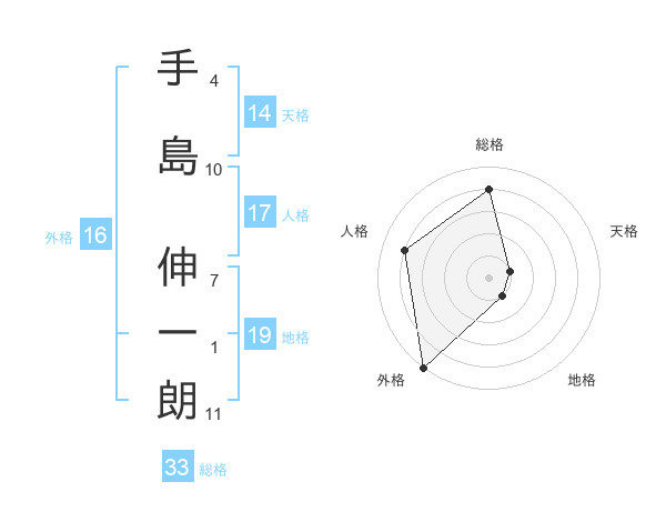 手島 伸一朗さんの総格は33画の4点!