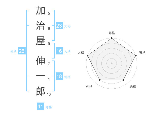 加治屋 伸一郎さんの総格は41画の5点!