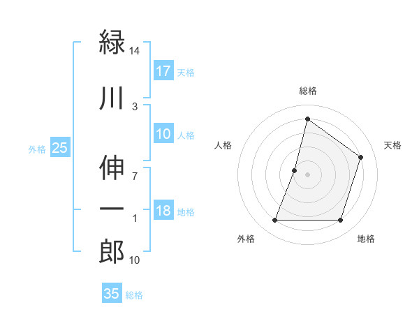 緑川 伸一郎さんの総格は35画の4点!