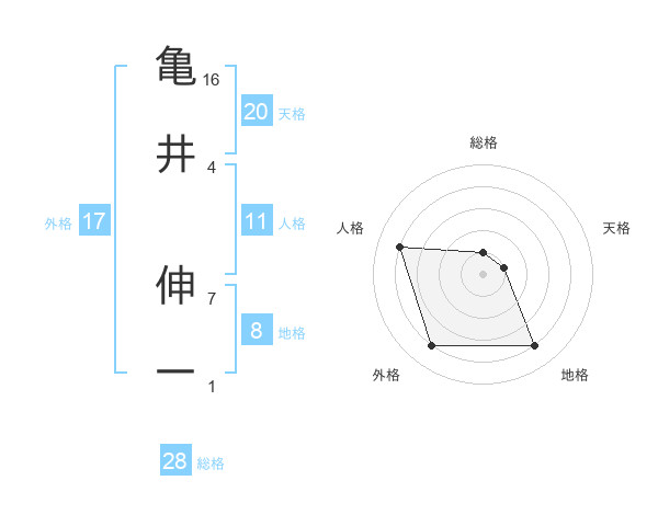 亀井 伸一さんを姓名の画数から五運を鑑定