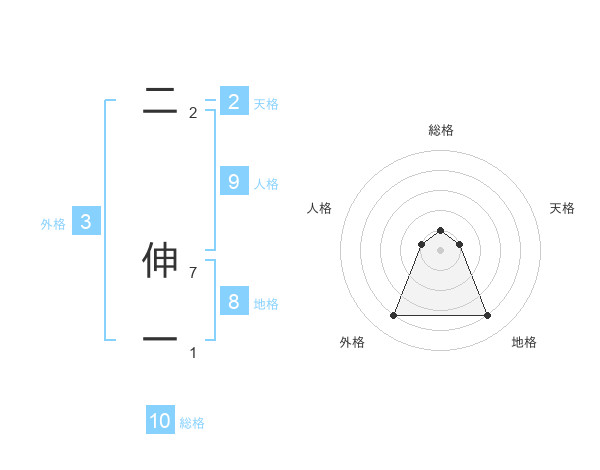 二 伸一さんの地格は8画の4点!