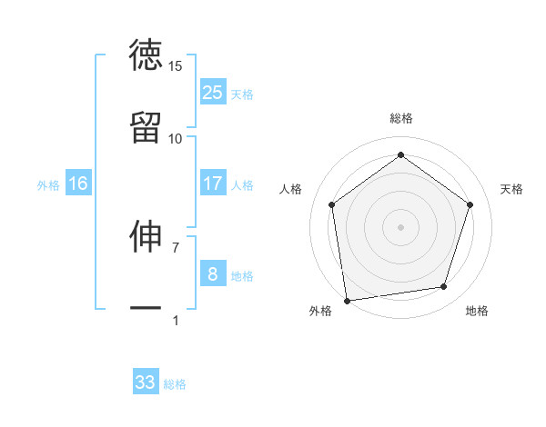 徳留 伸一さんを姓名の画数から五運を鑑定