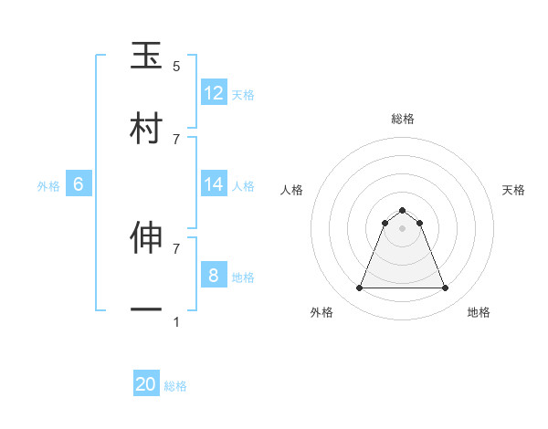 玉村 伸一さんの総格は20画の1点!