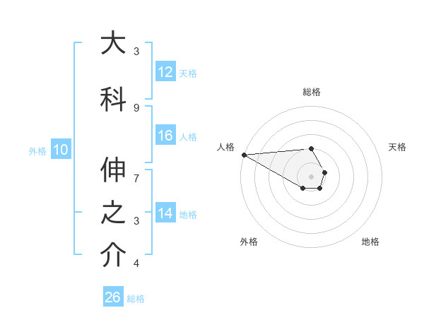 大科 伸之介さんを姓名の画数から五運を鑑定