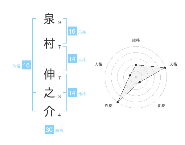 泉村 伸之介さんの天格は16画の5点!