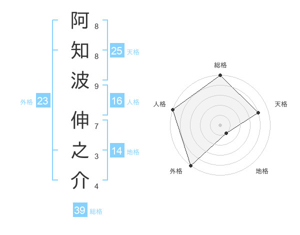 阿知波 伸之介さんの外格は23画の5点