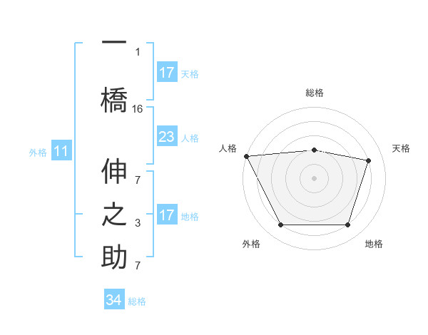 一橋 伸之助さんを姓名の画数から五運を鑑定