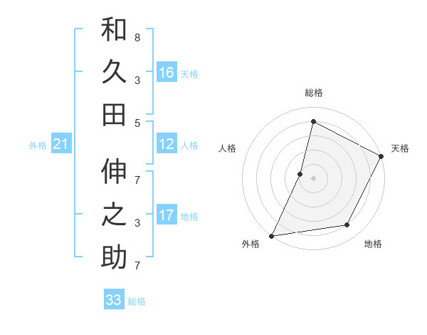 和久田 伸之助さんを姓名の画数から五運を鑑定