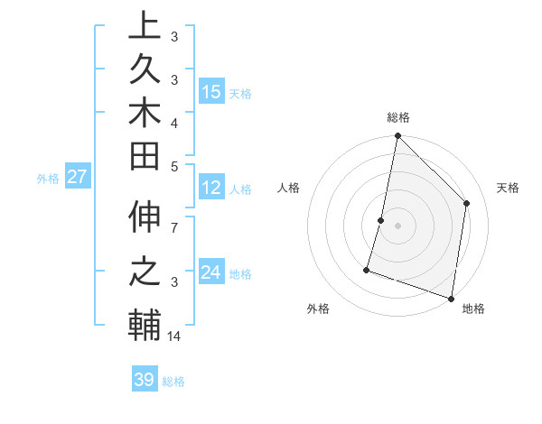 上久木田 伸之輔さんの総格は39画の5点!