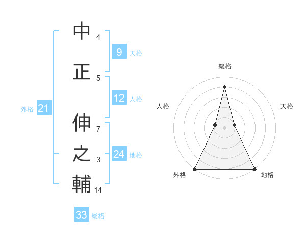 中正 伸之輔さんの外格は21画の5点!