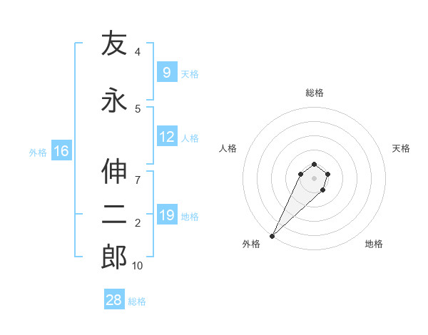 友永 伸二郎さんを姓名の画数から五運を鑑定