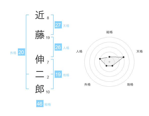 近藤 伸二郎さんを姓名の画数から五運を鑑定
