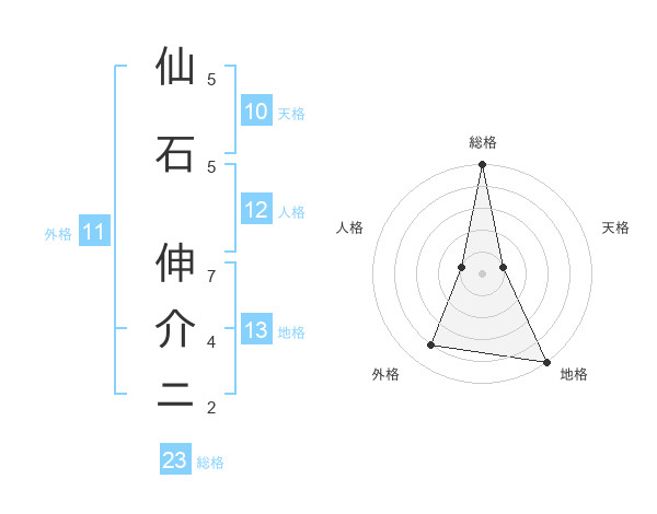 仙石 伸介ニさんを姓名の画数から五運を鑑定