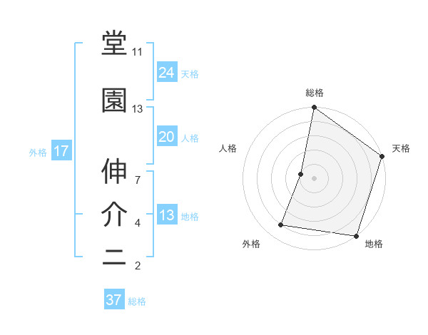 堂園 伸介ニさんを姓名の画数から五運を鑑定