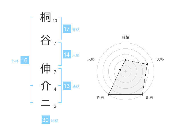 桐谷 伸介ニさんを姓名の画数から五運を鑑定
