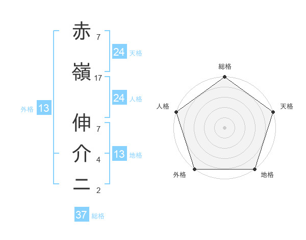赤嶺 伸介ニさんを姓名の画数から五運を鑑定