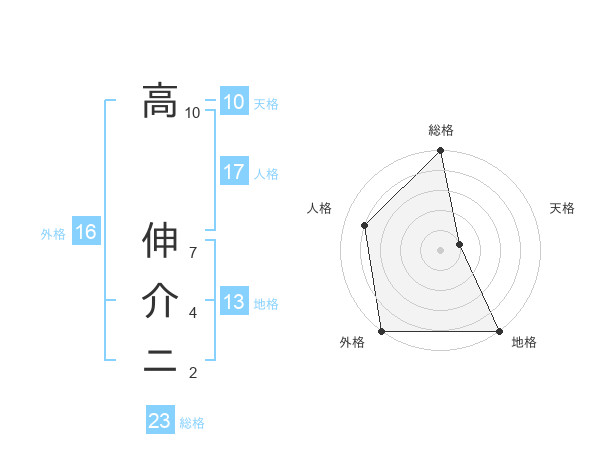 高 伸介ニさんを姓名の画数から五運を鑑定