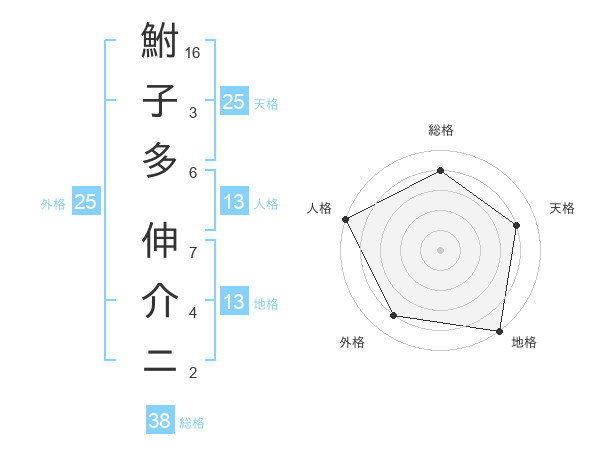 鮒子多 伸介ニさんを姓名の画数から五運を鑑定