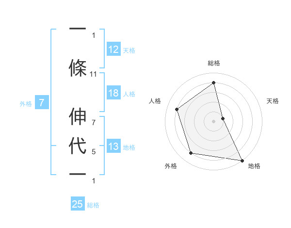 一條 伸代一さんの総格は25画の4点!