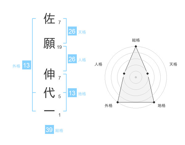 佐願 伸代一さんを姓名の画数から五運を鑑定