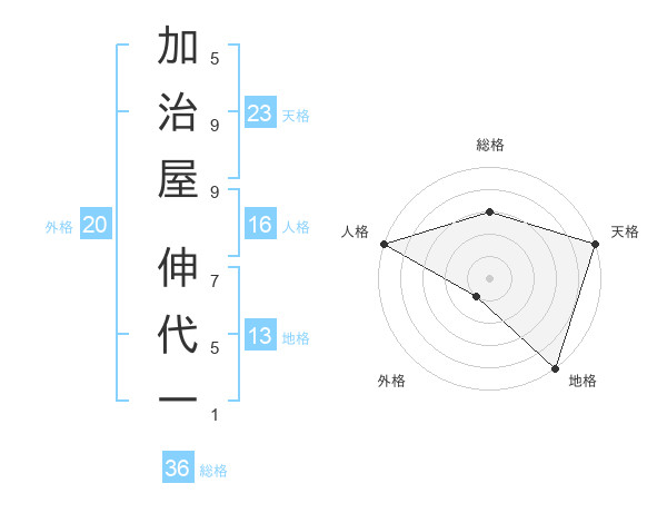加治屋 伸代一さんの天格は23画の5点!
