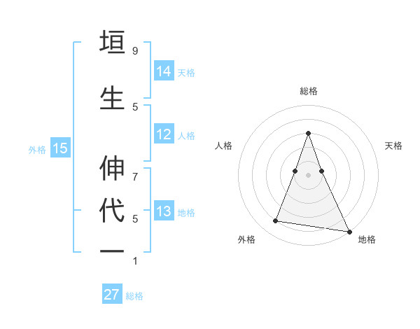 垣生 伸代一さんを姓名の画数から五運を鑑定