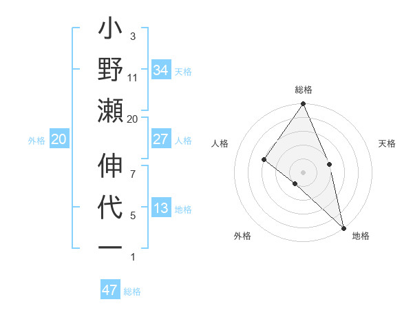 小野瀬 伸代一さんを姓名の画数から五運を鑑定