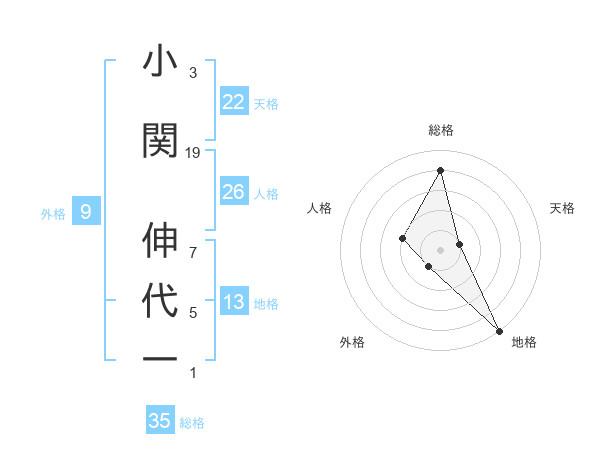 小関 伸代一さんを姓名の画数から五運を鑑定