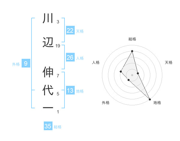 川辺 伸代一さんを姓名の画数から五運を鑑定