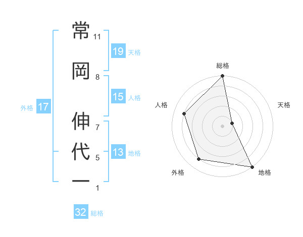 常岡 伸代一さんを姓名の画数から五運を鑑定